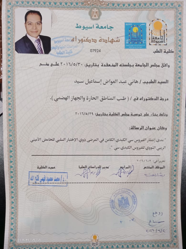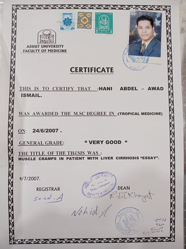 توثيق لمسيرة الدكتور الأكاديمية والمهنية من خلال صور الشهادات والدروع وشهادات التقدير التي حصل عليها في مجالات الطب والبحث العلمي والمبادرات المجتمعية داخل مصر وخارجها.